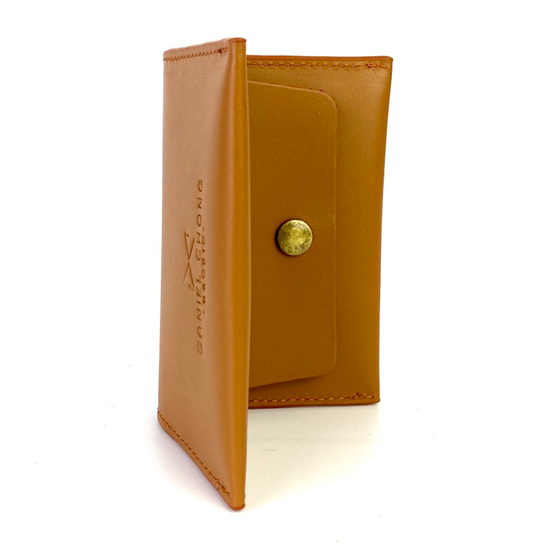 Tarjetero Daniel Chong de piel , con dos compartimentos para tarjetas y monedas.