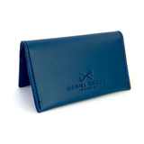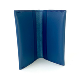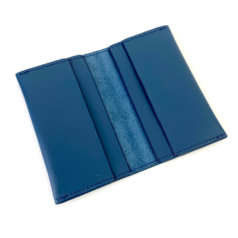 Tarjetero Daniel Chong de piel de color azul, con dos compartimentos para tarjetas.
