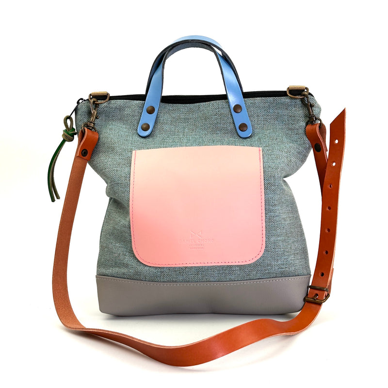 La bandolera cuadrada es un bolso minimalista, unisex con bolsillo exterior de piel con logo grabado. Ultraligera con asas de piel de curtición vegetal y asa regulable de piel.