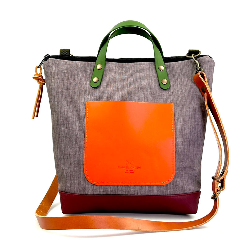 La bandolera cuadrada es un bolso minimalista, impermeable y con un bolsillo exterior de piel con logo grabado. Ultraligera con asas de piel de curtición vegetal y asa regulable de piel.