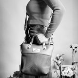 Bandolera mini Acolchada con asas de cuero, correa regulable de algodón de alta densidad y herrajes de latón.