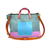 Bolso unisex y minimalista, con bolsillo exterior de piel con logo grabado. Ultraligera con asas de piel y correa regulable de curtición vegetal.