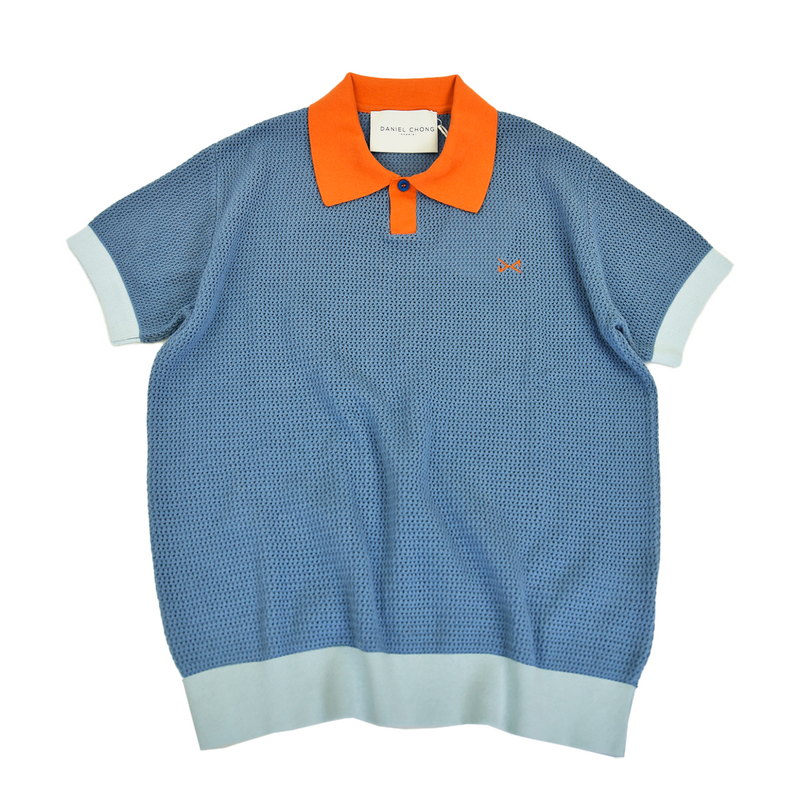 Men's Short Sleeve Mesh Polo w/ Button AZUL CLARO