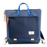 Mochila unisex en formato cuadrado para poder llevar un portátil de 13’’ o una tablet en modo horizontal. Con un bolsillo exterior, de piel vegana anti rozaduras y cremallera, con soporte para libros o revistas.