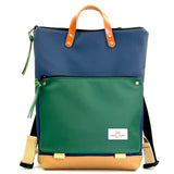 Mochila unisex. Además de su forma plana, cuenta con un bolsillo exterior de piel vegana anti rozaduras con cremallera y soporte para llevar un libro o revista.