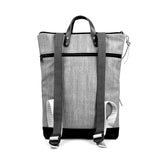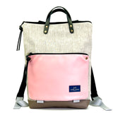 Mochila unisex. Además de su forma plana, cuenta con un bolsillo exterior de piel vegana anti rozaduras con cremallera y soporte para llevar un libro o revista.