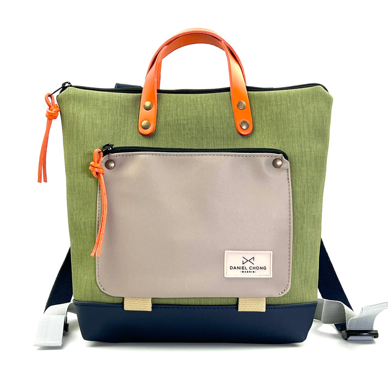Mochila en formato cuadrado, ultraligera con bolsillo central con Cremallera y con espacio para tu tablet.