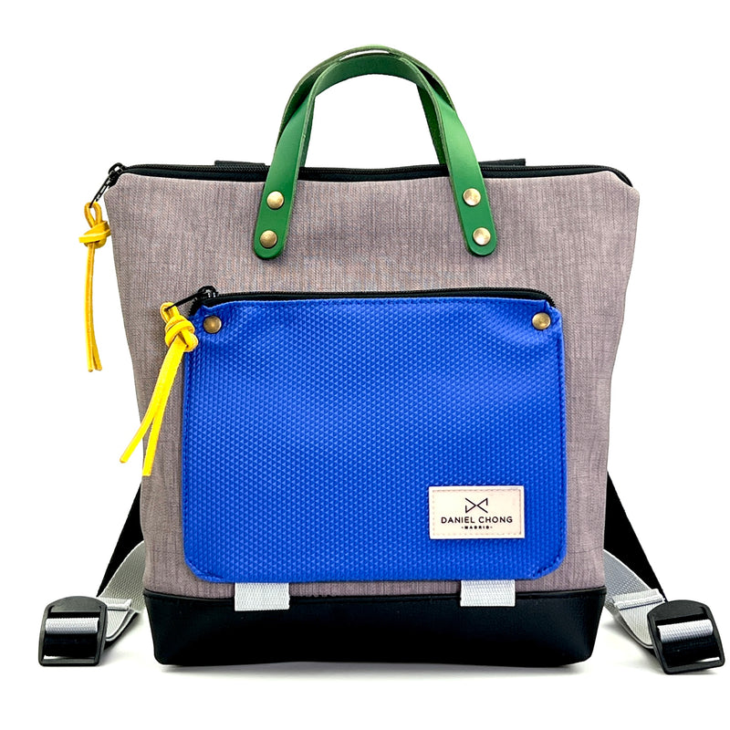 Mochila en formato cuadrado, ultraligera con bolsillo central con cremallera, bolsillo trasero y con espacio para tu tablet.