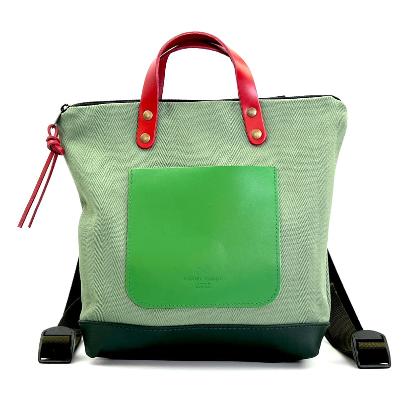 Mochila en formato cuadrado, ultraligera con bolsillo central con logo grabado en piel y con espacio para tu tablet.