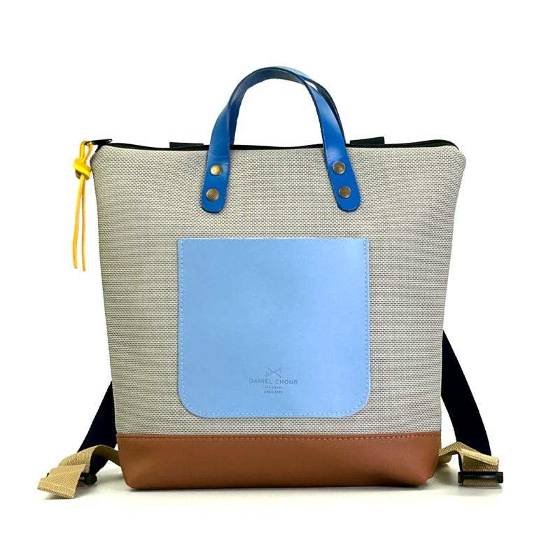 Mochila en formato cuadrado, ultraligera con bolsillo central con logo grabado en piel y con espacio para tu tablet.